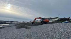 States of Guernsey says the diggers were on Belle Grebe Bay to re-profile the shingle bank.